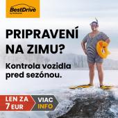 Jazdite v zime bezpečne! Nechajte si skontrolovať svoje auto v servisnej sieti BestDrive. Iba teraz ponúkame kontrolu vozidla za 7 EUR, vďaka ktorej získate prehľad o stave najdôležitejších častí vášho vozidla.